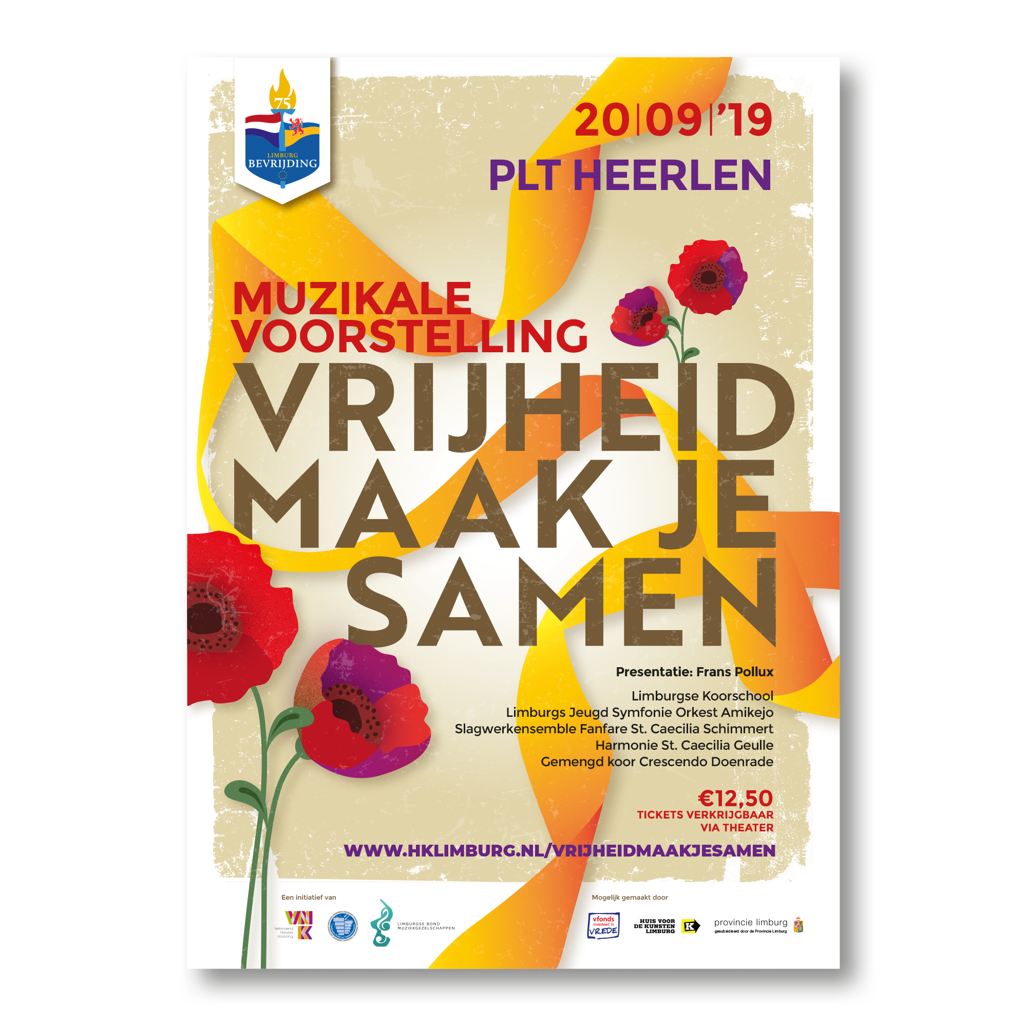 Voor het landelijke themajaar ‘Herdenken en Vieren 75 jaar Bevrijding’ sloegen de Limburgse muziekbonden de handen in elkaar om middels muziek aandacht te geven aan vrede en vrijheid. ‘Vrijheid maak je samen’ kwam tot stand in samenwerking met het Huis voor de Kunsten Limburg en werd mogelijk gemaakt door de Provincie Limburg en het vfonds.